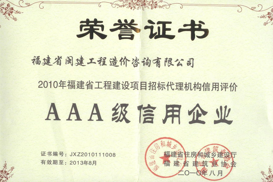 福建省閩建工程造價咨詢有限公司成立于1993年,原隸屬福建省建設委員會,2001年脫鉤改制為有限責任公司,公司注冊資本1200萬元,是一家具有甲級工程招標代理資質(證書編號:F135000429)、甲級工程造價咨詢資質(證書編號:甲150135000084)、政府采購代理資質、預備級中央投資項目招標代理機構資質(證書編號:ZYTZ-C2013239)、丙級工程資質(證書編號:工咨丙11520160008)的綜合性工程咨詢服務單位。能承擔各類建設項目的工程招標代理、工程造價咨詢...